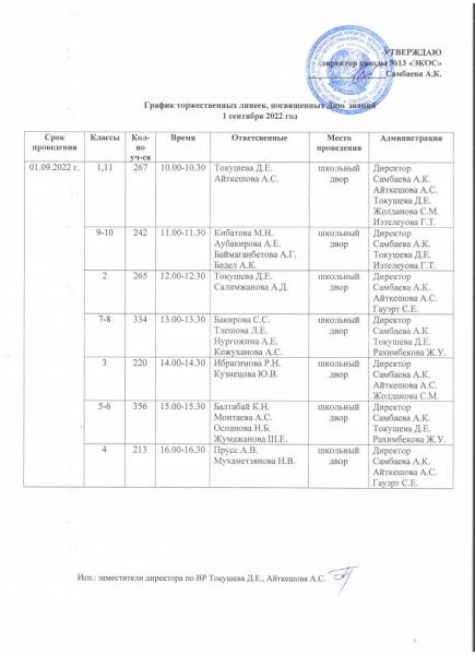 Білім күніне арналған салтанатты жиынның кестесі 1 қыркүйек 2022 жыл